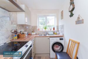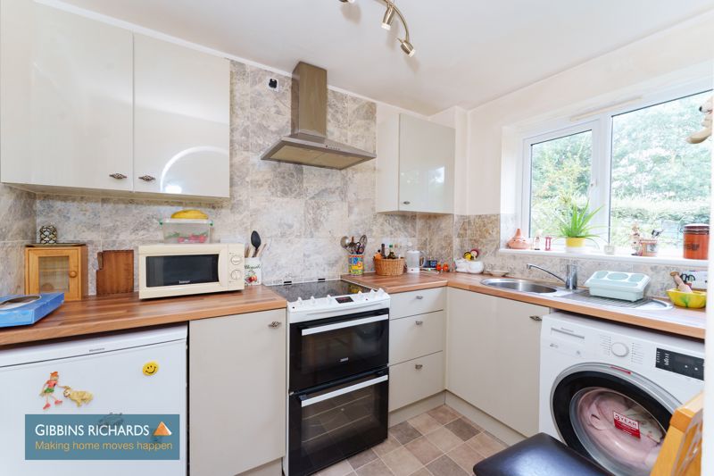 Side aspect window. Fitted floor and wall cupboard units with space and plumbing for washing machine. Pantry cupboard.