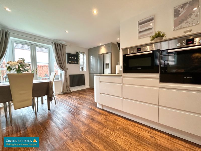 The house is accessed across a small front garden, planted with mature hedging and providing some good privacy from the road. The front door leads into an entrance hall, to the left of which is a very attractively laid out family area with bay window (which is now, due to some reconfiguring) open to the impressive kitchen/breakfast area which extends to the rear of the property. The kitchen is remarkably well fitted with base level cupboards and extensive work surfaces, built-in Bosch appliances including a microwave, oven, coffee machine, and various other contemporary fittings and features. There is also space for an American style fridge/freezer. On the first floor there is a sitting room, which again, utilises the bay window to add an extra feature and to the rear of that is a bedroom and bathroom. On the top floor, there are two further double bedrooms, one of which has an en-suite shower room. The property is beautifully presented throughout and one cannot under state the tasteful style that the current owners have utilised to make this a simply stunning family home. The house also comes with a small rear garden with access to a garage in a block behind with parking in front. With gas central heating and double glazing throughout, this property is a truly superb property and an early viewing is highly recommended.