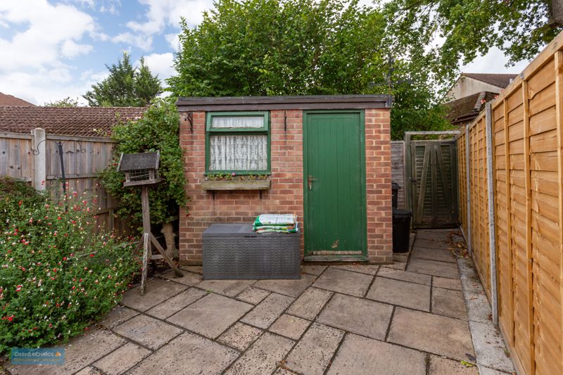 Private low-maintenance rear garden with rear access, a brick-built storage shed 8′ 10” x 4′ 10” (2.68m x 1.47m) and a garage situated in a nearby block.