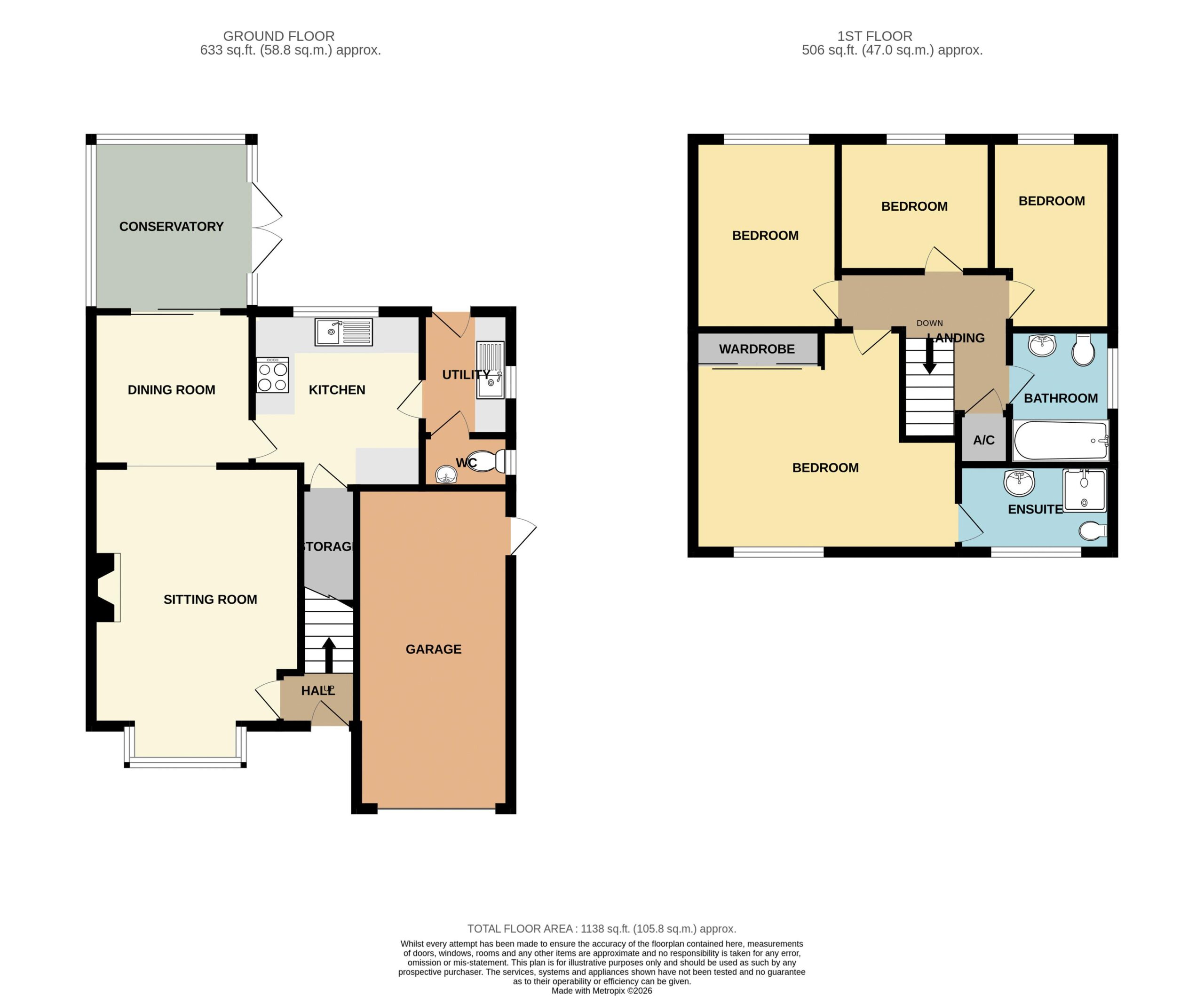11′ 4” x 14′ 1” (3.45m x 4.29m)