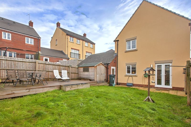 To the front of the property there is attractive wrought iron fence work with side driveway leading to an ATTACHED GARAGE 17′ x 5″ x 8’6″ (5.30m x 2.59m) with light, power and loft storage space with personal door to rear garden. The rear garden is fully enclosed and attractively laid out with patio, lawn and raised deck to include an 8′ x 6′ timber shed. There is exterior water and light with side pedestrian gate.