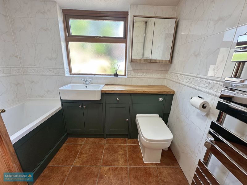 Rear aspect obscure window. Fitted in a three piece suite comprising low level WC, wash hand basin and bath with overhead shower. Heated towel rail.