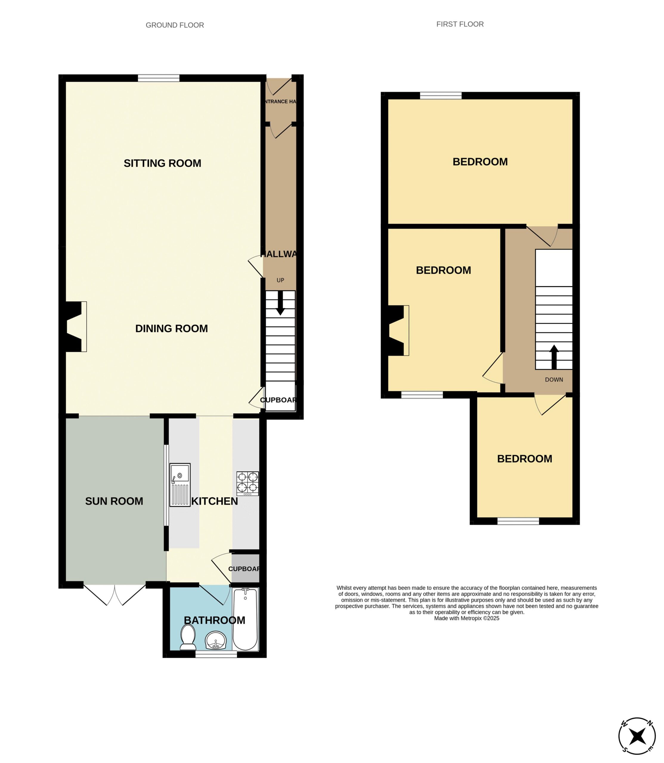 Doors to three bedrooms. Hatch to loft.