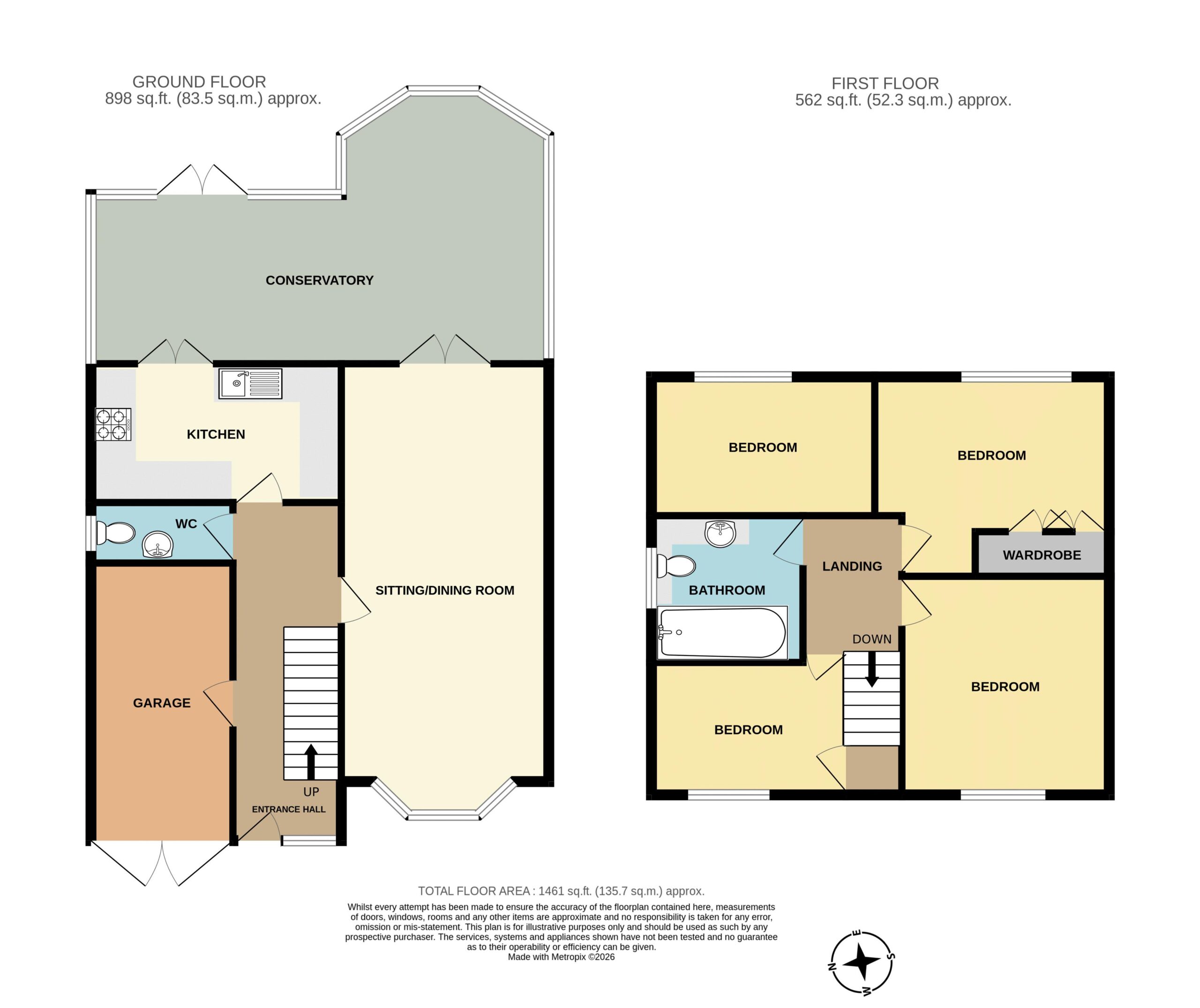 This spacious detached family home boasts a very large conservatory addition which opens into a fully enclosed garden which is not overlooked from its rear boundary. The accommodation provides a spacious sitting/dining room, downstairs cloakroom, direct access to garage from hallway as well as a comprehensively fitted kitchen with built-in appliances. Tudor Way is situated on the popular ‘Wills Estate’ on the southern outskirts of Bridgwater within close proximity to Junction 24 of the M5 motorway. Bridgwater town centre which boasts a wide and comprehensive range of facilities is under one mile distant.