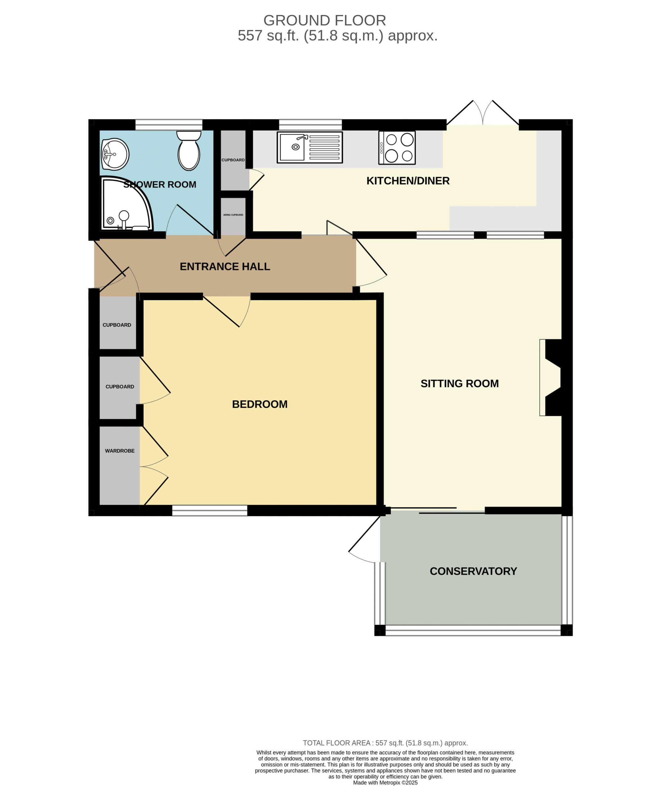 The flat is access via a communal entrance door and then a private door into the ground floor accommodation. There is a central hallway with the main accommodation coming off of it. The main accommodation includes two storage cupboards, sitting room, double bedroom, shower room and kitchen/diner. Both the shower room and kitchen/diner have been refurbished in recent months and the property is presented in very good condition throughout. Most noteworthy are two gardens, one to the front and one to the rear, both of which are of good size. The front garden is on two tiers and offers a summerhouse, whilst the back garden is laid to lazy lawn and is slightly smaller. Allenslade Flats is located on the north side of Wiveliscombe and is conveniently located for the town centre. There is also unrestricted parking to the block.