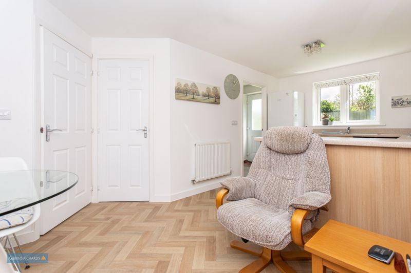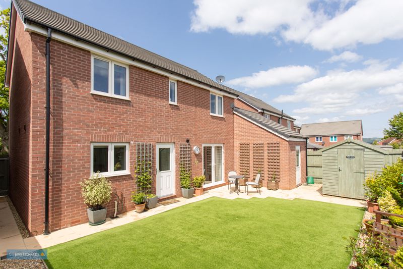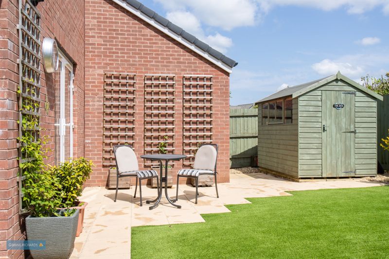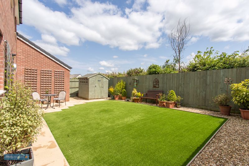 To the front of the property there is a side drive way with parking for up to two vehicles leading to an attached garage 19′ 5” x 9′ 8” (5.91m x 2.94m) with remote controlled roller door, light, power, roof storage and access door to rear garden. The rear garden has been beautifully maintained with a patio section, ornamental gravel area and artificial lawn, useful insulated work shed with light and power. The garden itself is not overlooked from its rear boundary.