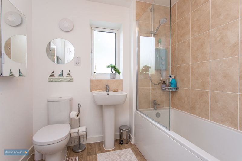 Panelled bath with Mira shower and screen, wash basin and wc.