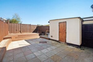 Off road parking to front of property with shared side access leading through to the rear garden containing; store shed with light and power, patio and a raised sun deck. We believe the garden to be south east facing.