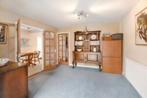 To the front of the property is a small front garden and off road parking for 3 cars. INTEGRAL GARAGE. South facing 60′ (approx) rear garden.