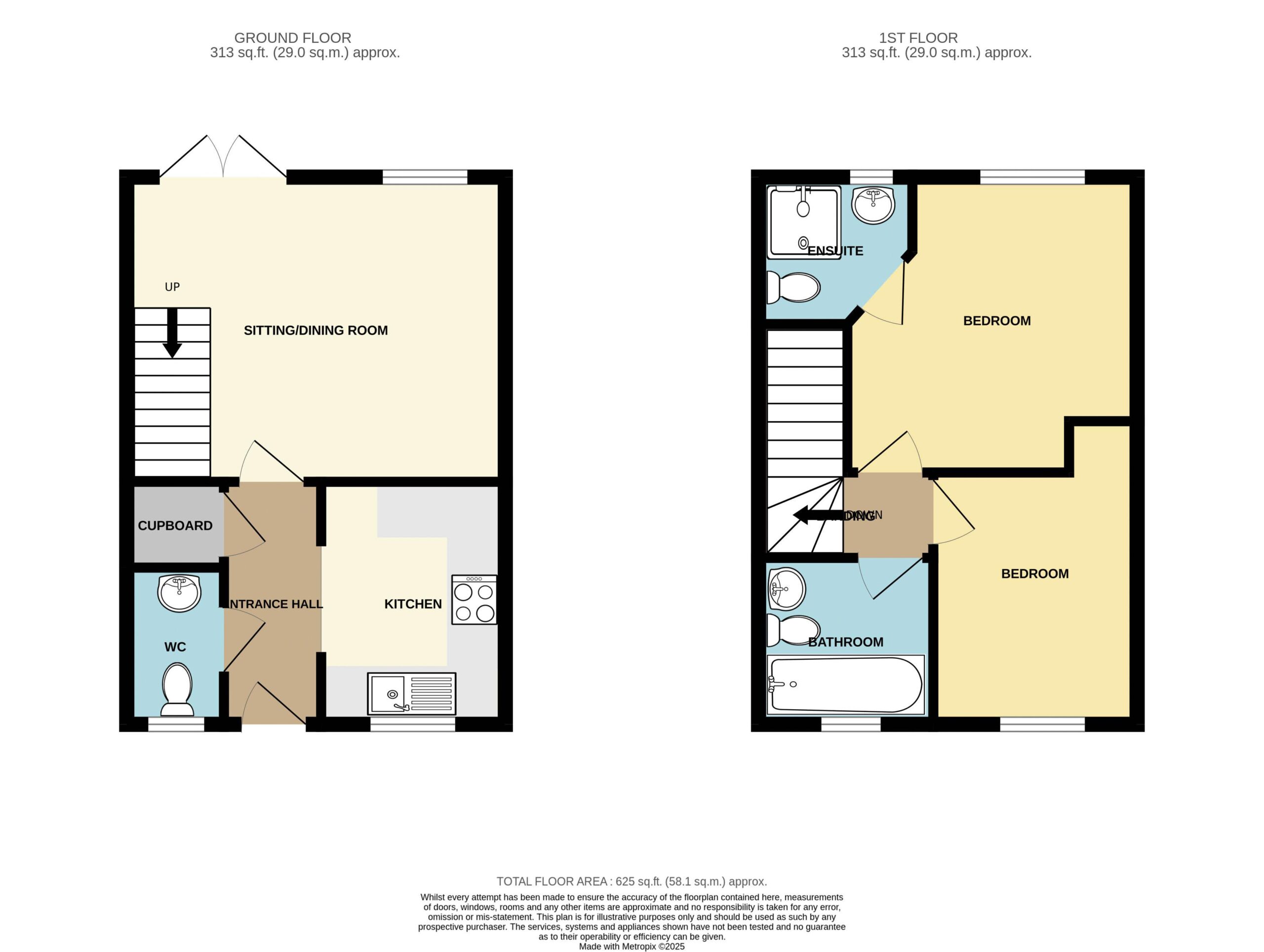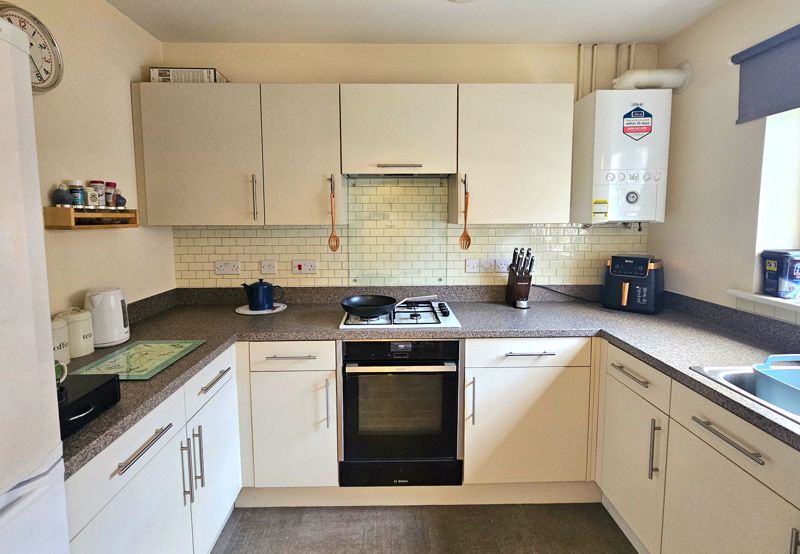 Enclosed rear garden with rear pedestrian gate which leads to the garage 19′ 0” x 9′ 3” (5.79m x 2.82m) with up and over door. Parking for one car in front of the garage.