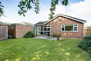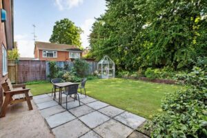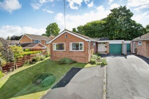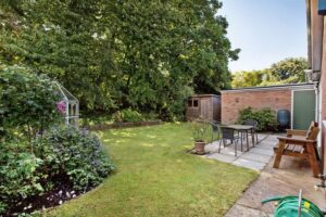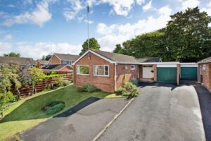 Open plan front gardens, ample parking to driveway and turning bay. DOUBLE GARAGE 32′ x 8’7. Fully enclosed garden to rear.