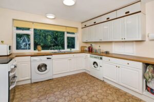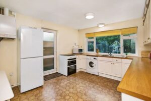 Refitted with white gloss units, plumbing for washing machine, Viessman gas boiler.