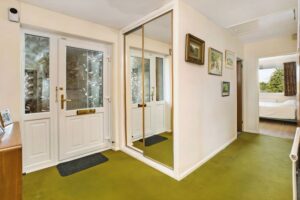 Two cloaks cupboards, trap door to roof space with fitted ladder.