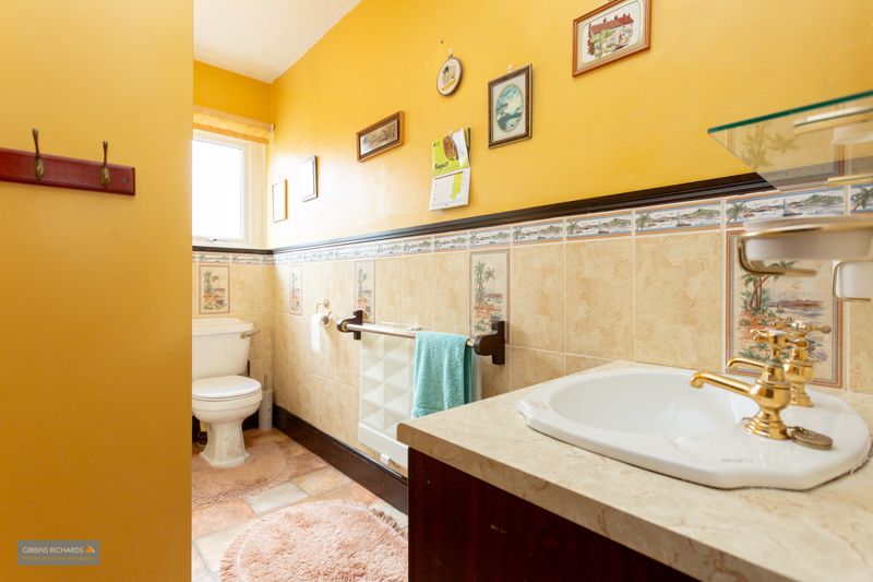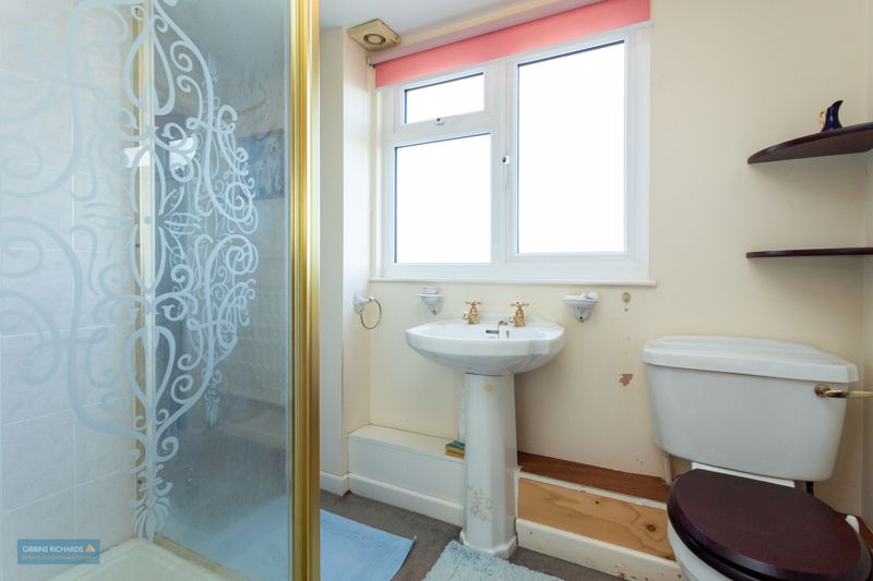 Side aspect obscure window. Fitted with a three piece suite comprising low level WC, wash hand basin and enclosed shower cubicle with ‘Mira’ electric shower.