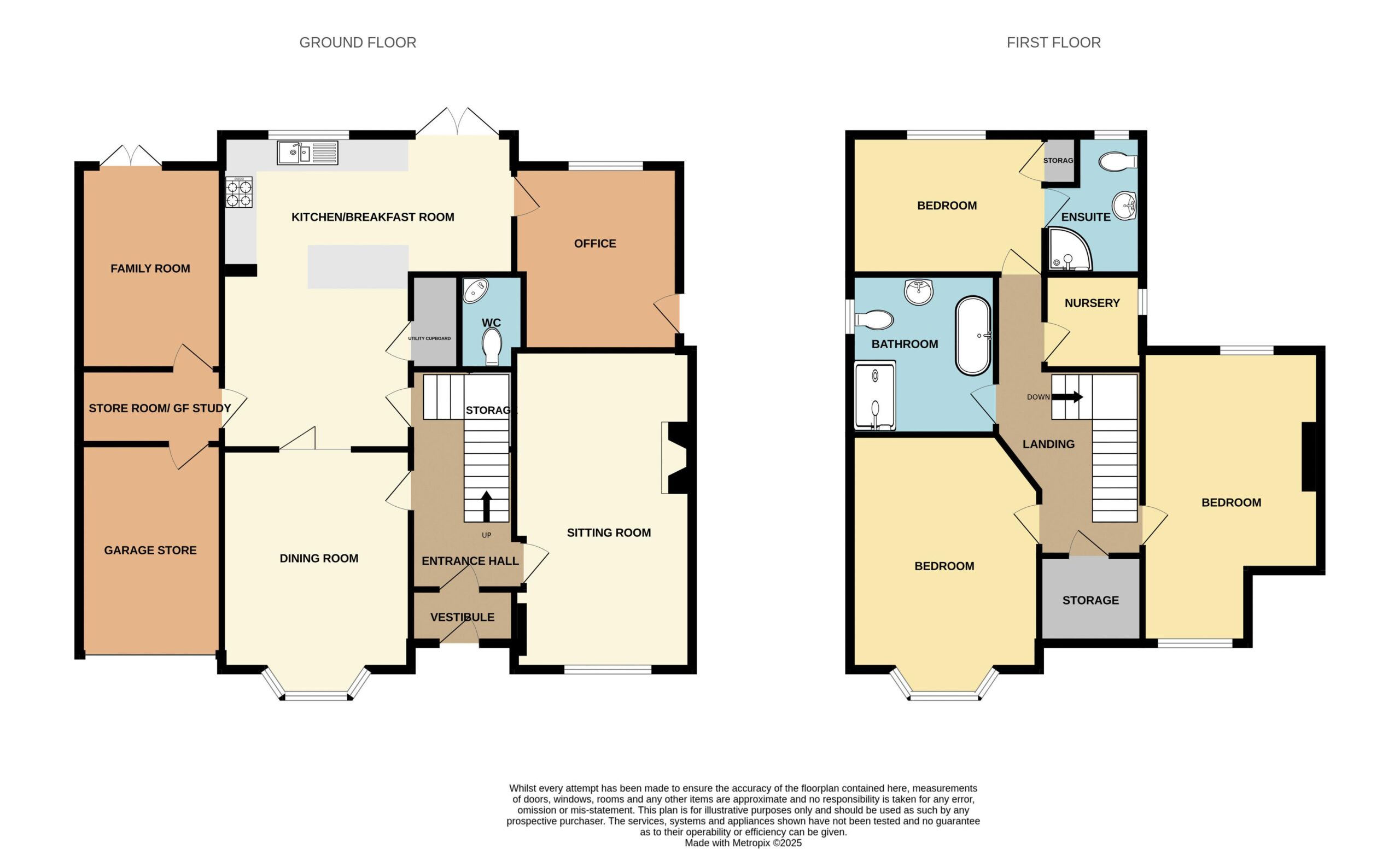 Doors to three bedrooms, nursery and family bathroom. Storage cupboard. Hatch to loft.