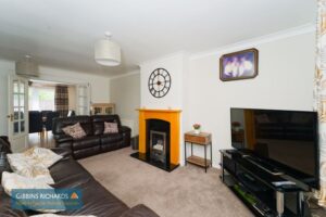 18′ 5” x 13′ 6” (5.61m x 4.11m) reducing to 10′ 5” (3.17m) in part. Front aspect window. Doors to;