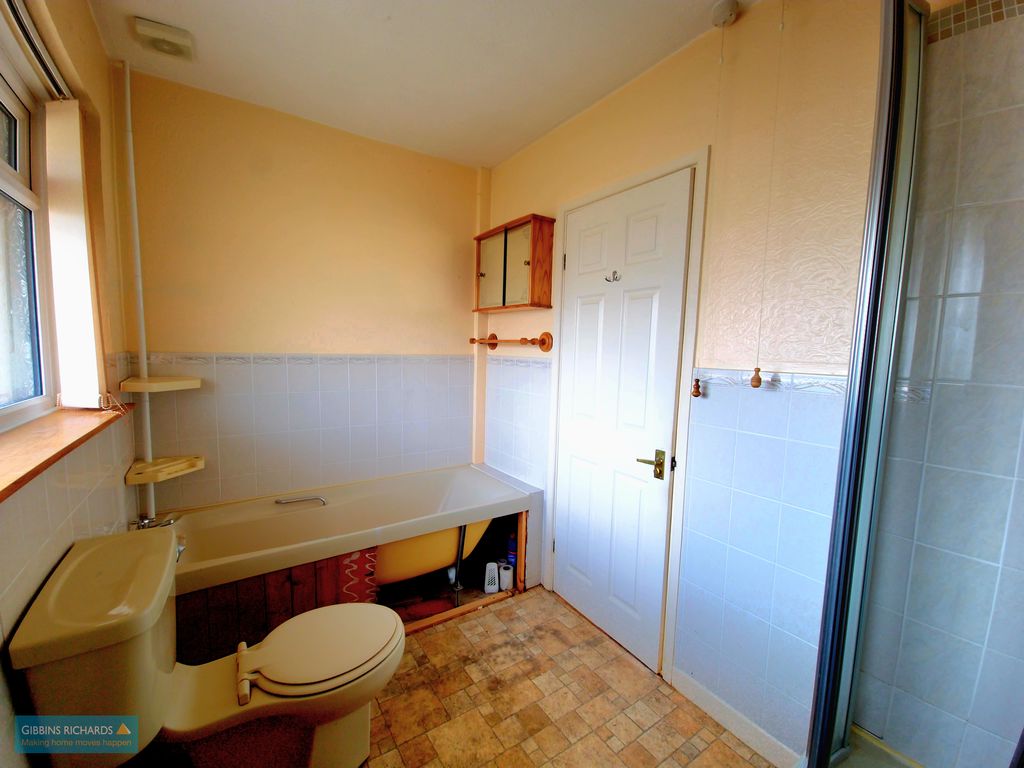 Front aspect obscure window. Fitted with a four-piece suite comprising WC, wash hand basin, bath and separate corner shower cubicle.