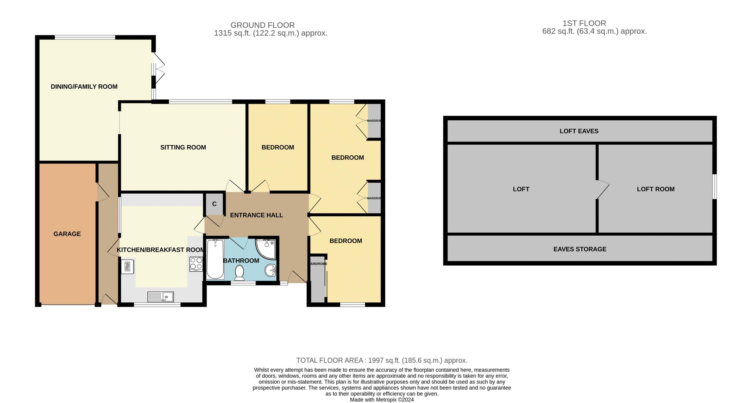 Doors leading to all principal rooms including the three bedrooms, sitting room, family bathroom and kitchen/breakfast room. Built-in storage cupboard.