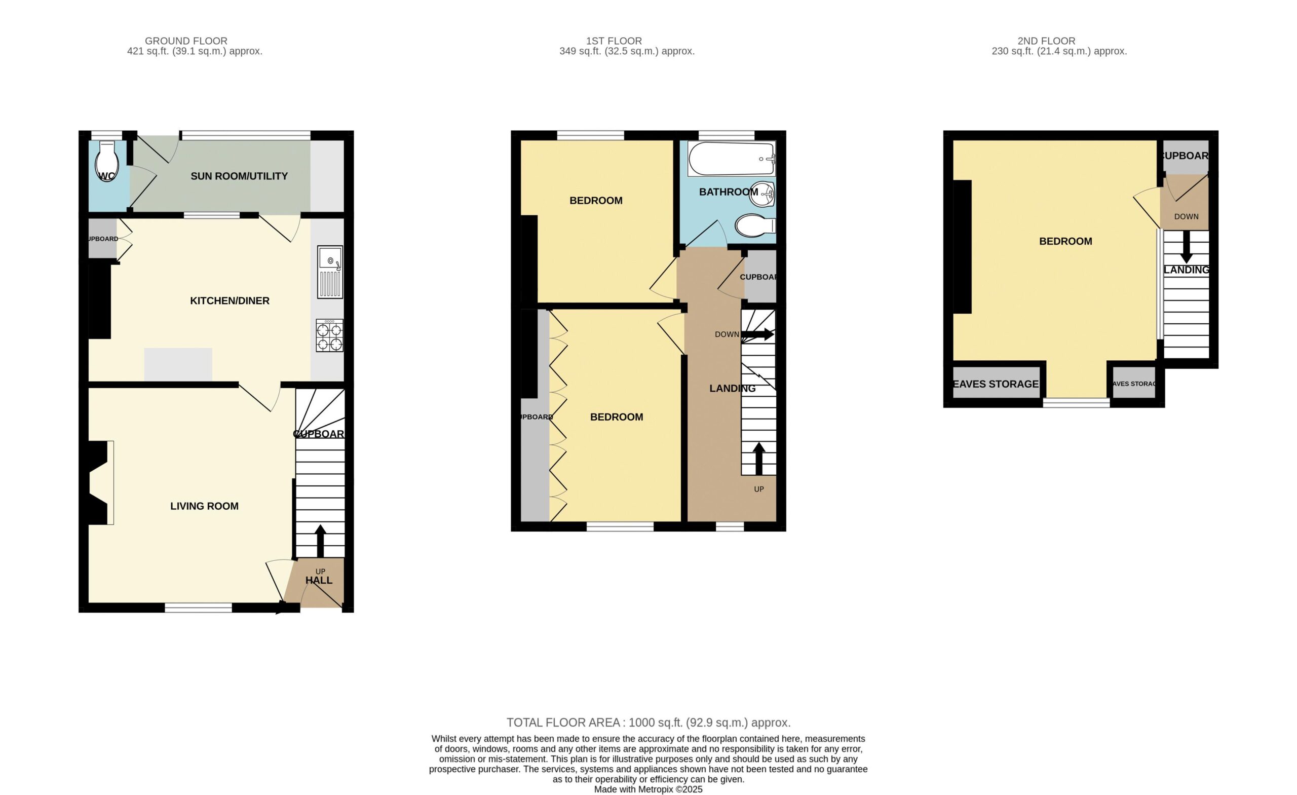 9′ 10” x 9′ 5” (2.99m x 2.87m)