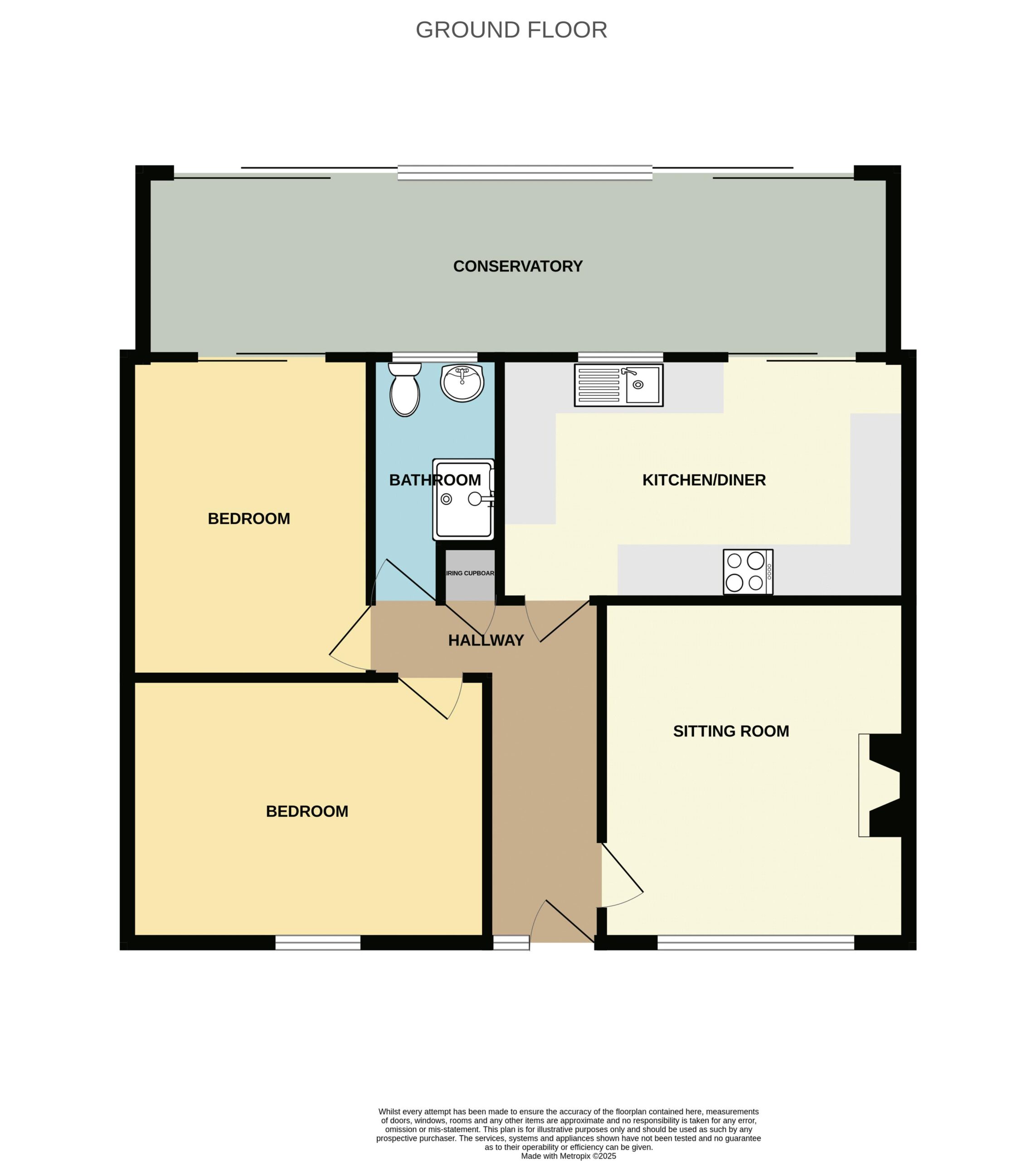 This is a two double bedroom terraced bungalow with full-width conservatory extension in Rockwell Green with front and rear gardens as well as single garage. Energy rating : D -55