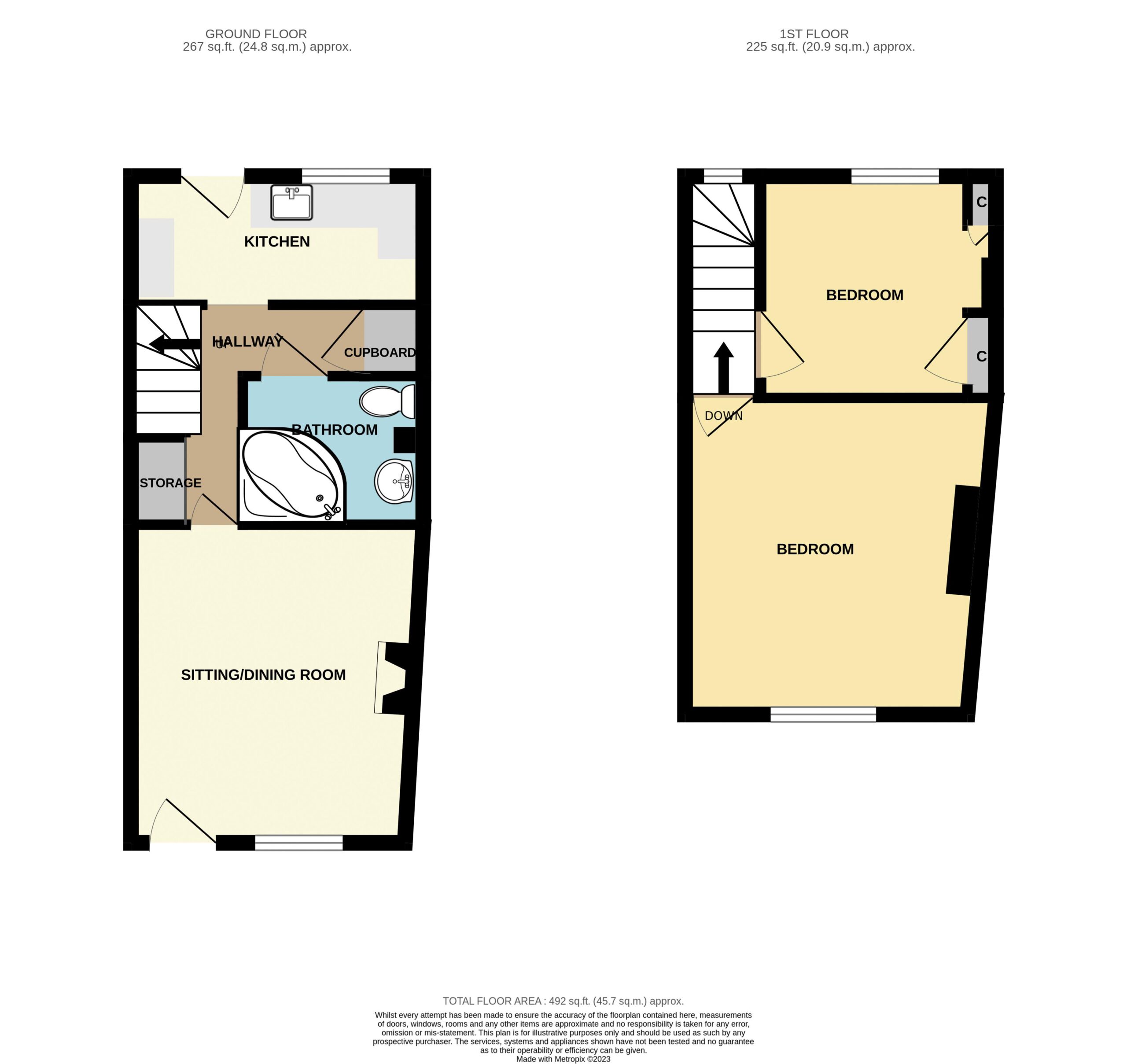Stairs to first floor. Doors to storage cupboards and bathroom.
