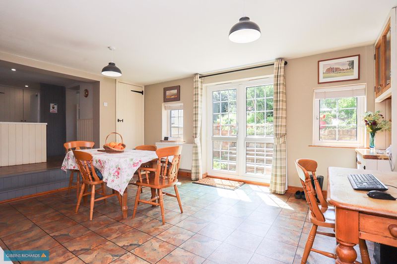 Three double glazed windows, double glazed French doors to rear, door to storage cupboard and two shallow steps upto kitchen.
