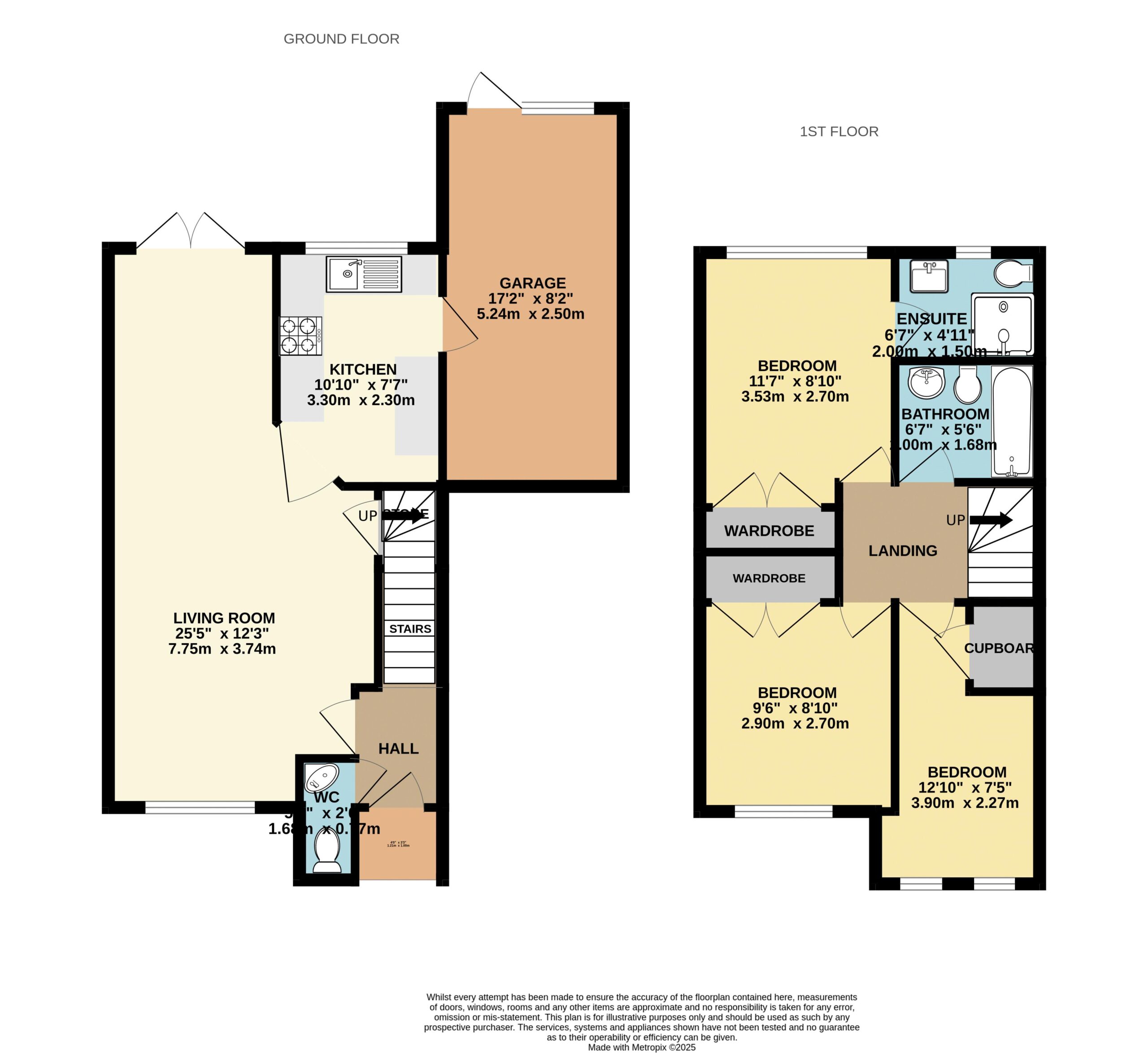 25′ 5” x 12′ 3” (7.74m x 3.73m)