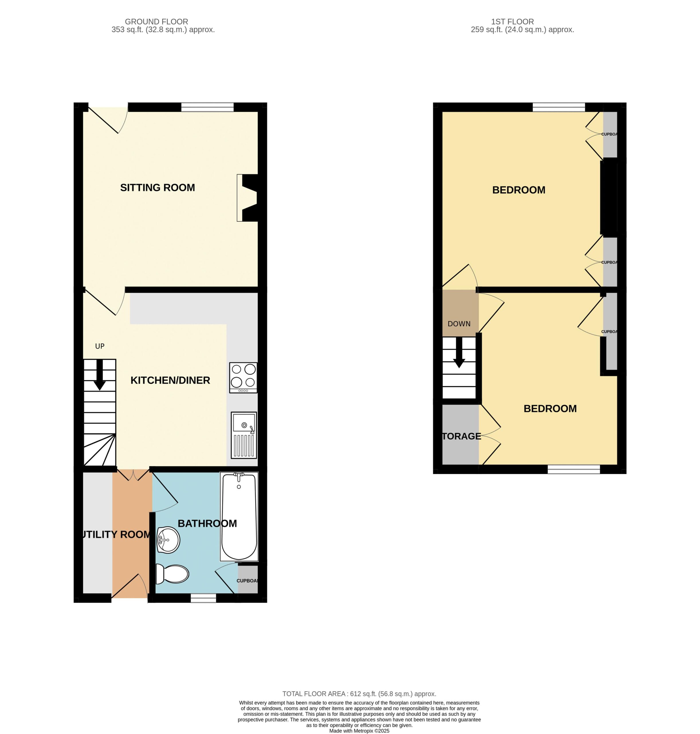 7′ 7” x 5′ 7” (2.31m x 1.70m)