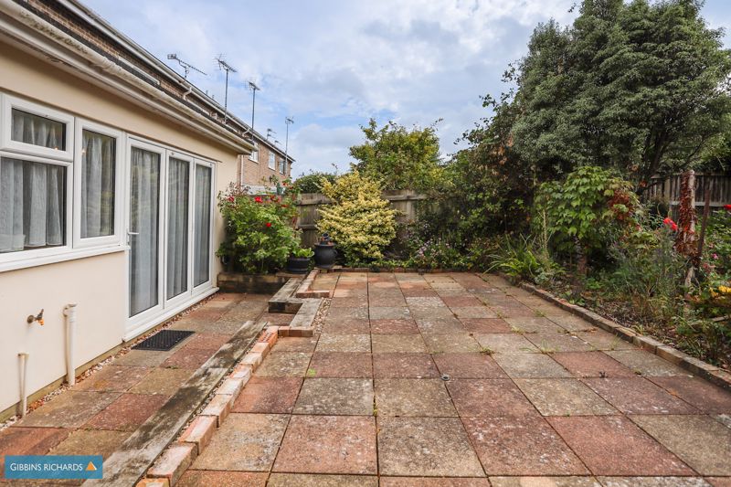 There is gravel frontage and a shared pathway leading to the main entrance. There is a patio garden to the rear.