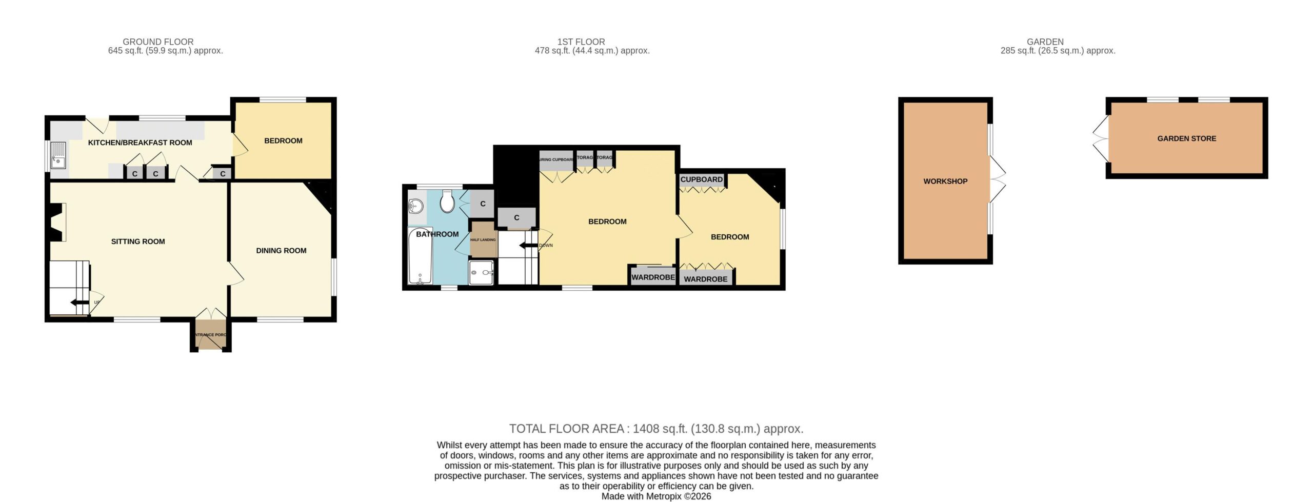 The accommodation is accessed via a front porch which leads into the sitting room, with an impressive inglenook fireplace with log burner, turning stairs to the first floor and access into the dining room and kitchen. From the kitchen there is a very useful ground floor third bedroom / home office / snug. The staircase leads to a half-landing where there is a good sized bathroom, and then on the first floor there are two inter-connecting double bedrooms, one of which could be used as a dressing room or nursery room. Externally the cottage has a lot to offer – a driveway provides hardstanding parking for 2-3 cars as well as a detached and stone built single garage. The cottage is surrounded by its own gardens, beautifully planted and with a central lawn. There are mature hedge borders creating a great deal of privacy from the main road, yet the garden has an open aspect which gathers much sunlight through the day. To the rear of the house there is a very private patio area, ideal for sitting and outdoor dining, and there is also a large wooden workshop/summerhouse with power and lighting, to the side of the driveway. Ashe Cross Cottage currently resides adjacent to the A358 between the Thornfalcon traffic lights and Henlade village.