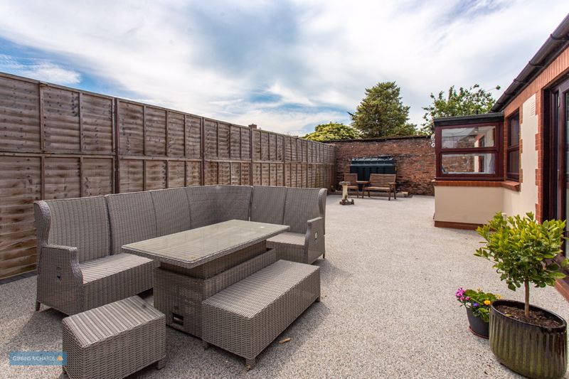 Fully enclosed area to the front with double gates and additional gate providing access to extensive parking area. Side access to rear garden. The south facing rear courtyard garden is fully enclosed and very private, an ideal place to relax. There are two timber sheds to the side of the property one with power and light.