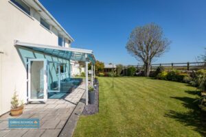 To the front of the property is an area of lawned garden, driveway parking for multiple cars leading to a double garage 18′ 3” x 17′ 3” (5.57m x 5.26m) with electric roller doors. Stunning and private southerly rear garden which backs onto open countryside, laid to lawn with borders and a variety of mature trees and shrubs, paved patio area under a glass canopy, outside lights and tap. The garden also contains a multi-purpose garden room 20′ 8” x 10′ 3” (6.30m x 3.12m).