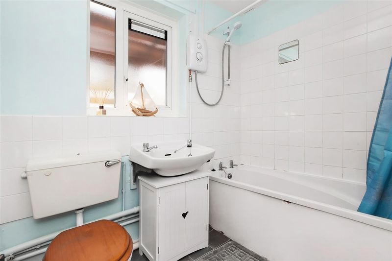 Three piece suite with electric shower over bath. Airing cupboard with hot water tank and immersion heater.