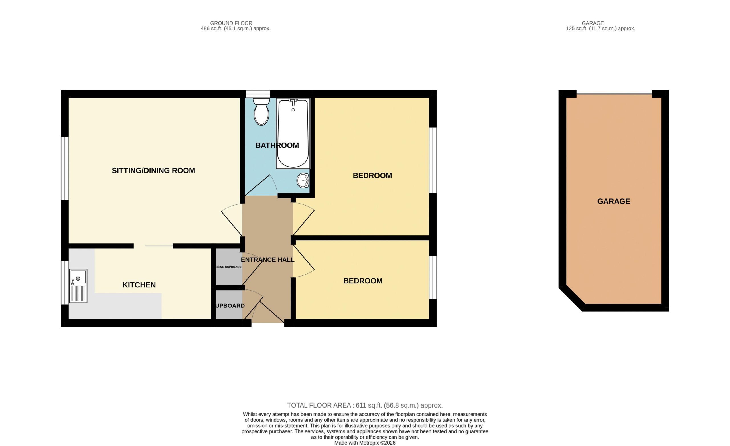 Single garage in a nearby block and a store shed.