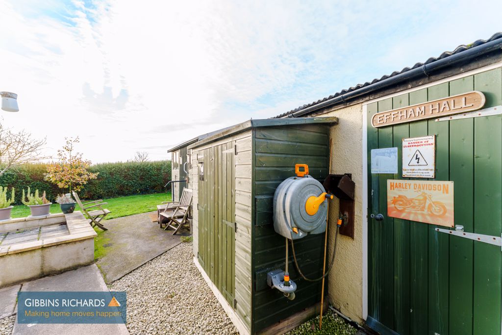 To the front of the property there is a long side driveway allowing ample off road parking leading to an attached GARAGE with light and power. The front garden is fully enclosed and laid mainly to lawn. A side gate to rear as well as access door to garage. Timber storage shed and further large work shed. The rear garden benefits from a sunny south westerly aspect and backs onto farmland. Within the garden there is a semi-enclosed sun patio, wide lawn, arbour, shrub bed and side courtyard containing the oil fired boiler.