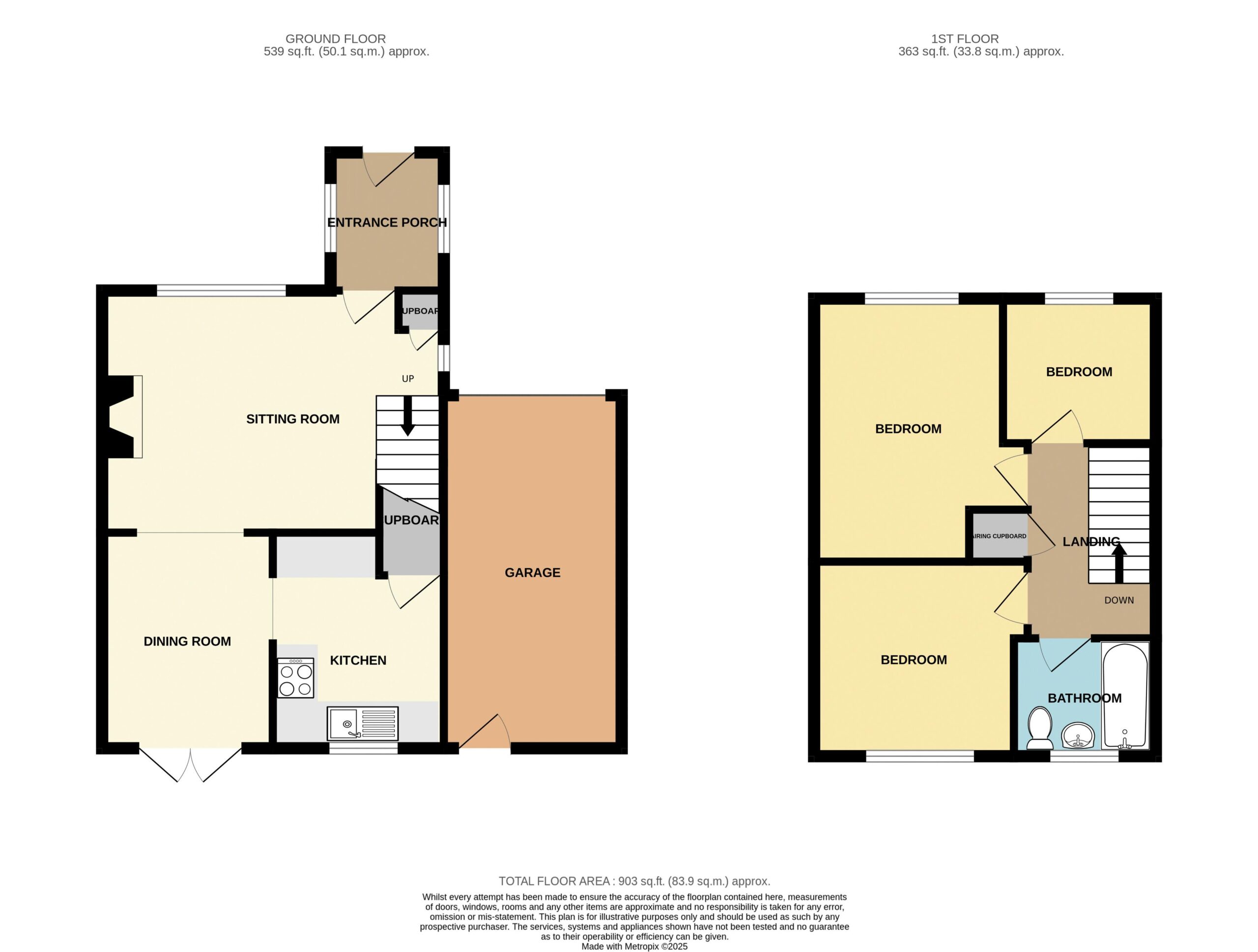 Driveway parking to the front of the property along with a paved and lawned seating area, behind the railings, that benefits from the late afternoon sun. Garage 17′ 0” x 8′ 7” (5.19m x 2.61m). A wonderful and enclosed rear garden, largely planted with evergreens.