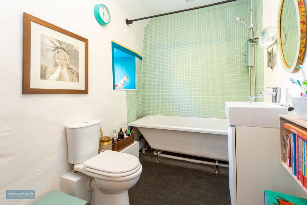 Good amount of parking at the end of the driveway, as well as a beautiful cottage garden, which abuts a small stream to the far west. There is also an enclosed rear area of garden on the level with the oil tank and access to the rear of the property.