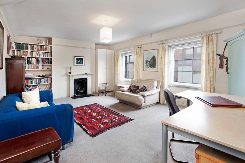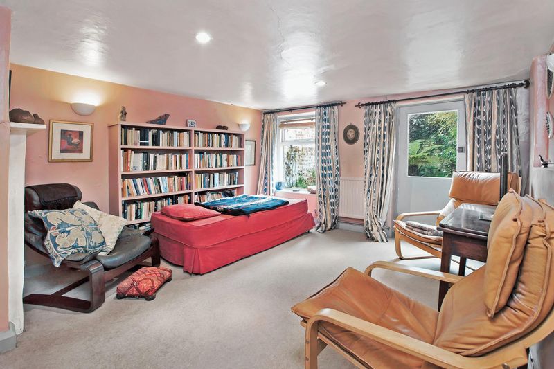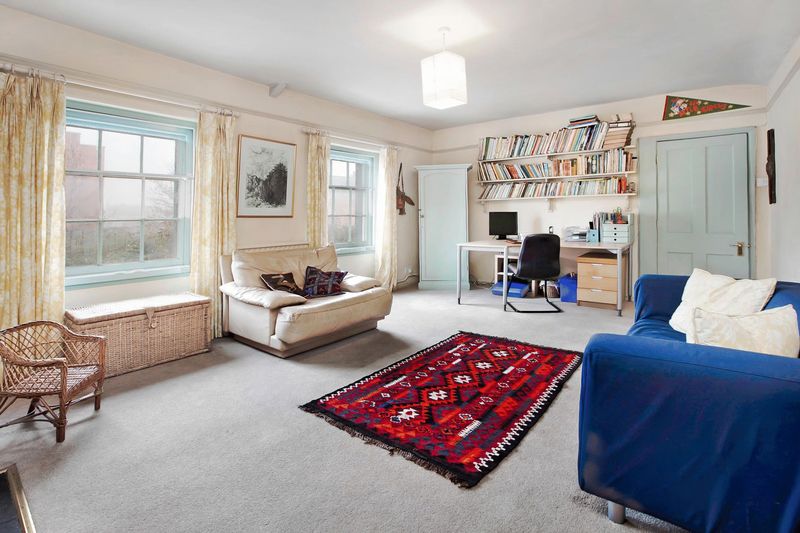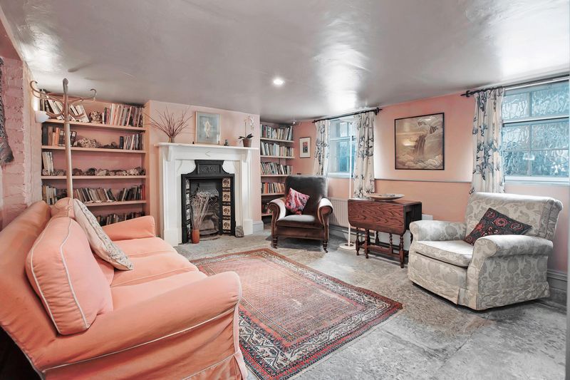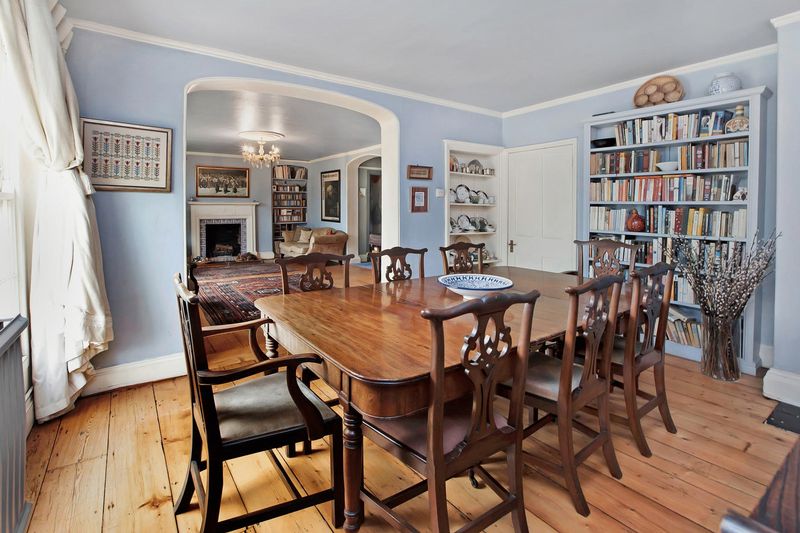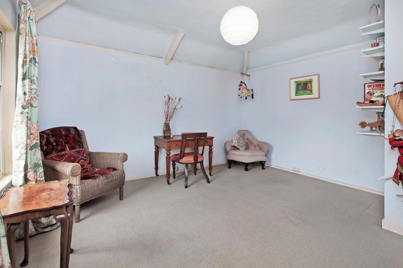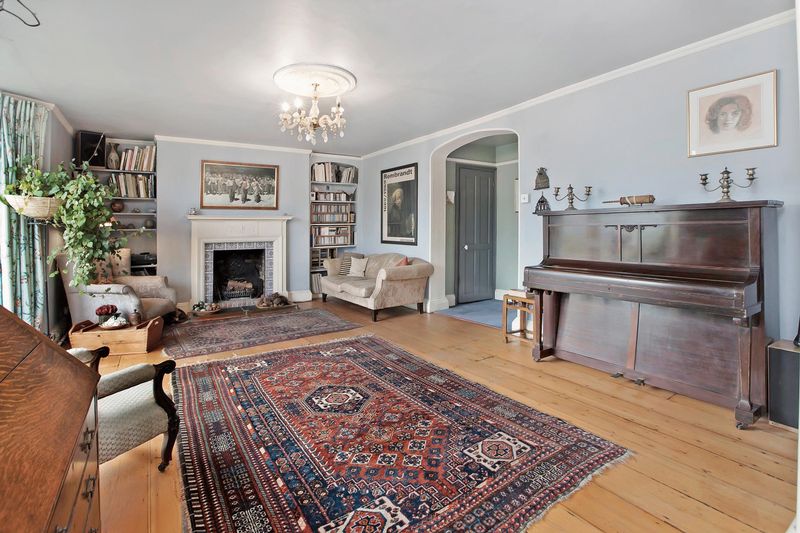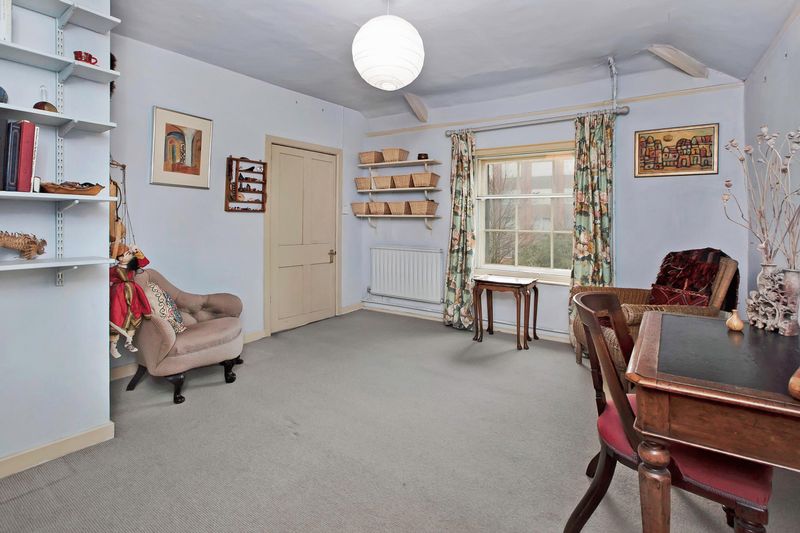 Original exposed floorboards, sash window to rear with similar views, built-in book shelving and independent door to the upper ground floor hall.