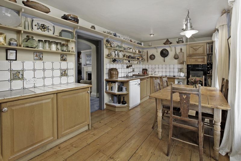 Original flagstone floor and a butlers sink set in a solid worktop, various built-in cupboards to either side of an original chimney breast, one of which houses the Worcester gas fired boiler supplying central heating and hot water.