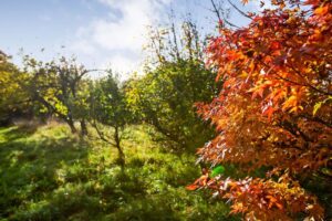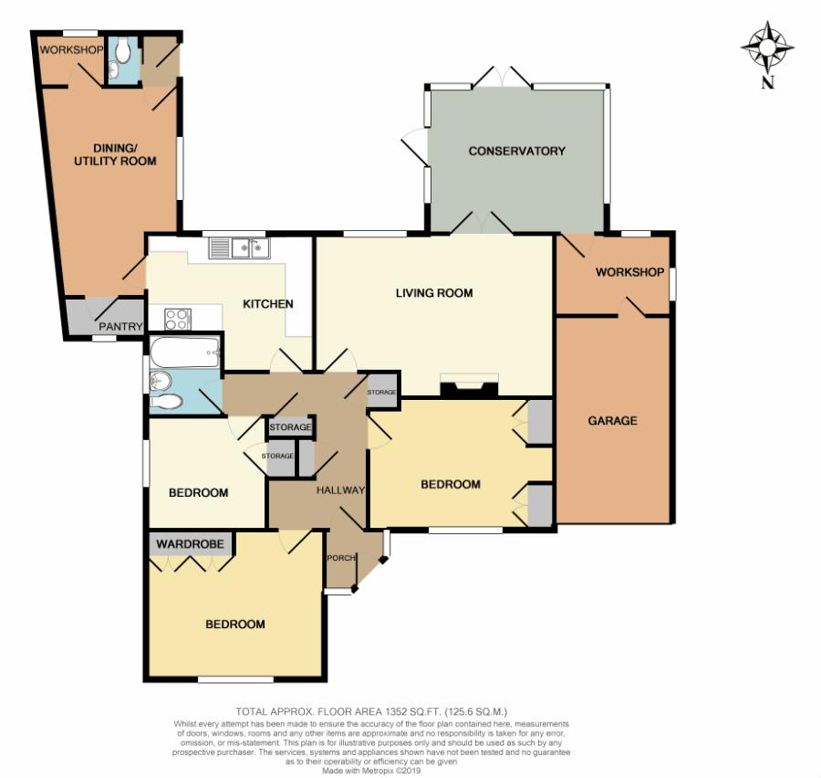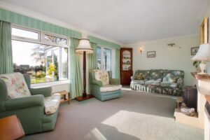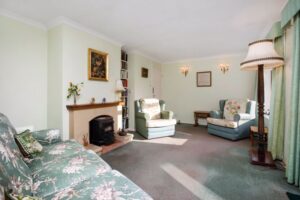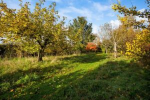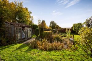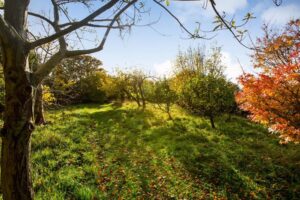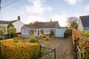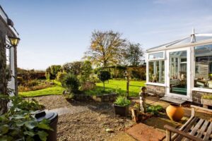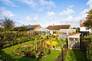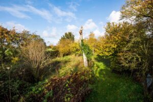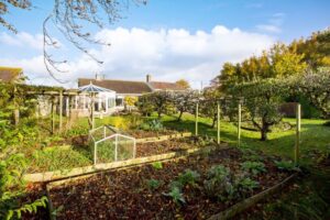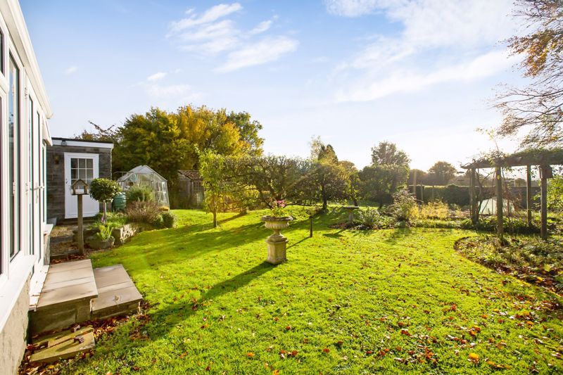 Gravelled front garden with shrubs. Ample parking. Garage 16′ 5” x 8′ 9” (5.00m x 2.66m) Workshop 8′ 8” x 6′ 0” (2.64m x 1.83m). Beautifully stocked rear garden with large areas of lawn, raised vegetable beds, fruit trees, sunken pond, summerhouse, greenhouse and access gate to playing field. Additional secret orchard garden well stocked with various trees.