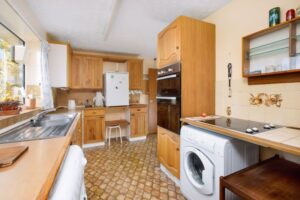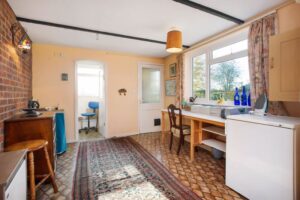Pantry cupboard. Door to workshop, rear lobby and cloakroom with wc on macerator.
